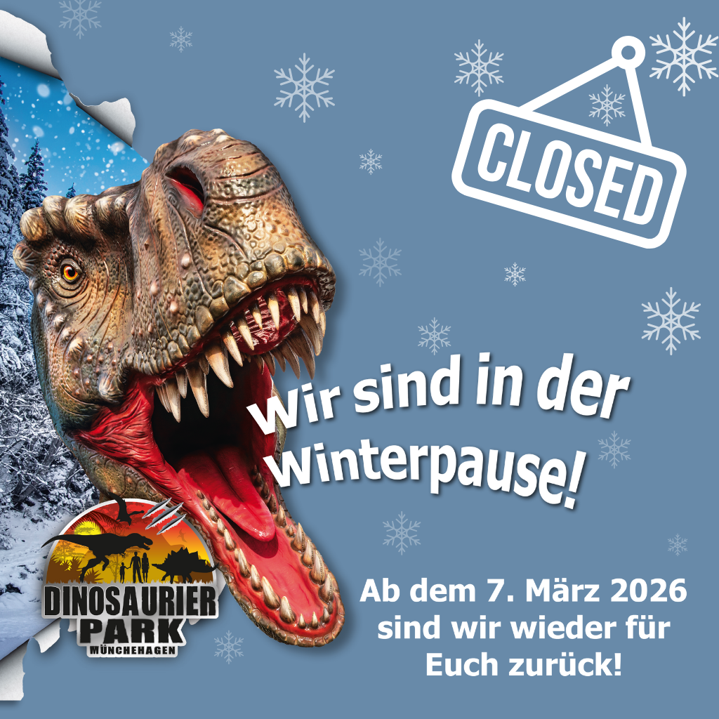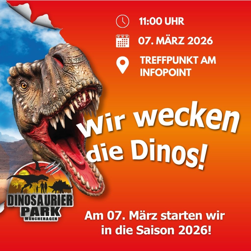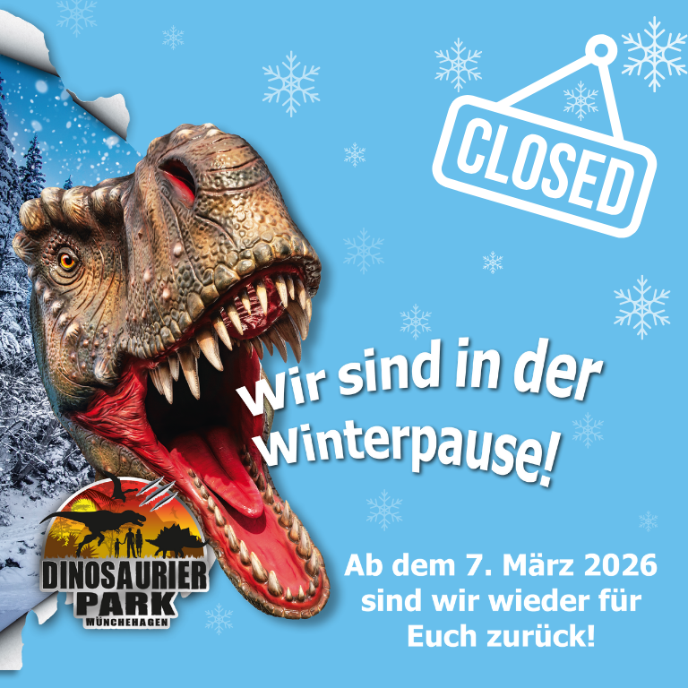 Der Dinopark ist ab dem 07. März 2026 wieder täglich von 9 bis 18 Uhr für Euch geöffnet.